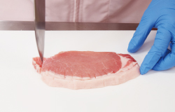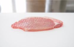〇焼いた時の肉の縮みを防ぎ、出来るだけ平らなとんかつに仕上げるために、肉を丁寧に筋切りします。