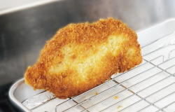 ・通常の小麦粉→卵の時よりバッター液の方が卵をしっかりつけられるので、パン粉の付きが良くなり、食感の良いとんかつに仕上がります。