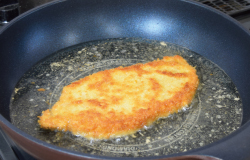 〇揚げ焼きを出来るだけ短時間にするため、肉の厚みを肉たたきなどで薄く調整します。