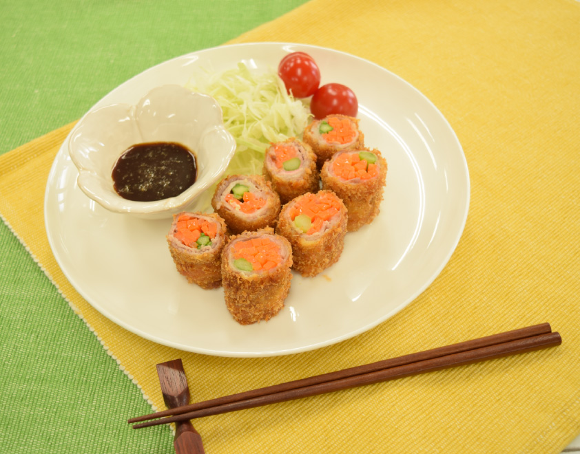 ニンジンとアスパラの肉巻きフライ