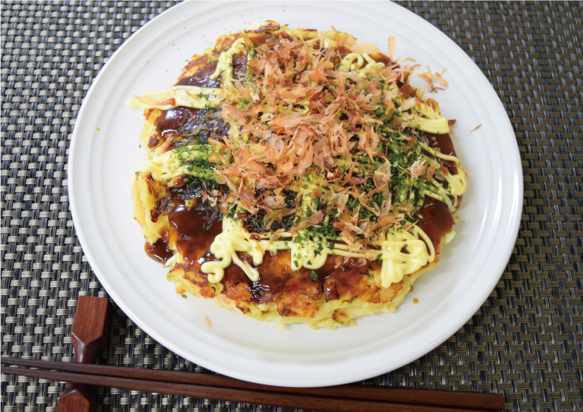★パン粉と長芋でしっとりふわふわ食感のお好み焼きをお楽しみください。