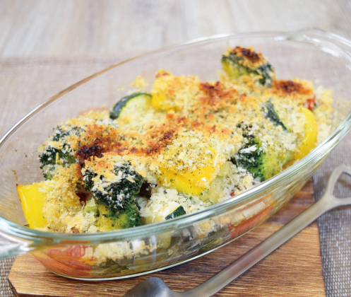 トースターでパン粉をカリッと仕上げましょう!野菜は好みや季節に合わせて変更してください。